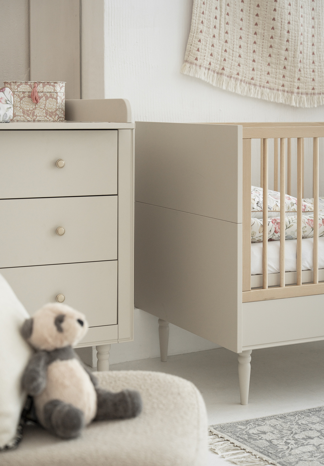 Komoda w klasycznym stylu z kolekcji Petite - dysponuje trzema szufladami, które działają na prowadnicach najwyższej klasy, wyposażonych w hamulec oraz funkcję samodomyku. Dla dodatkowego komfortu dostępna jest opcja dokupienia demontowalnej nakładki przeznaczonej do przewijania.