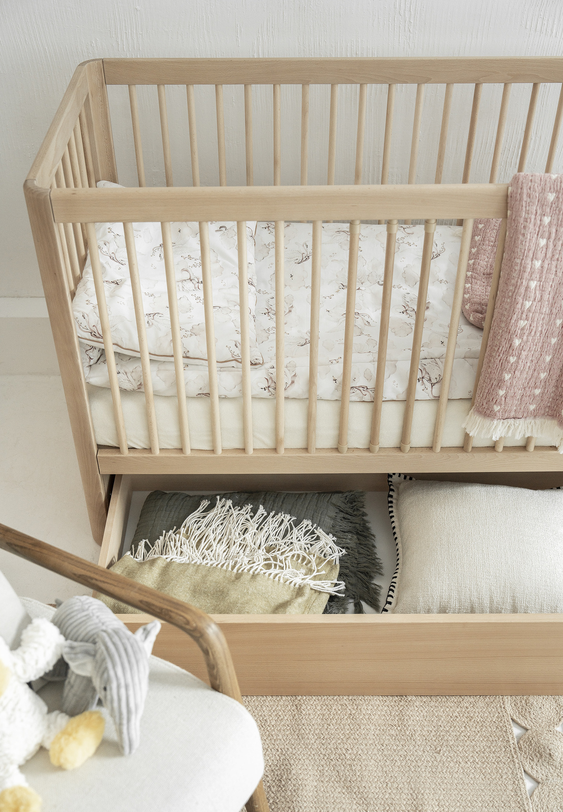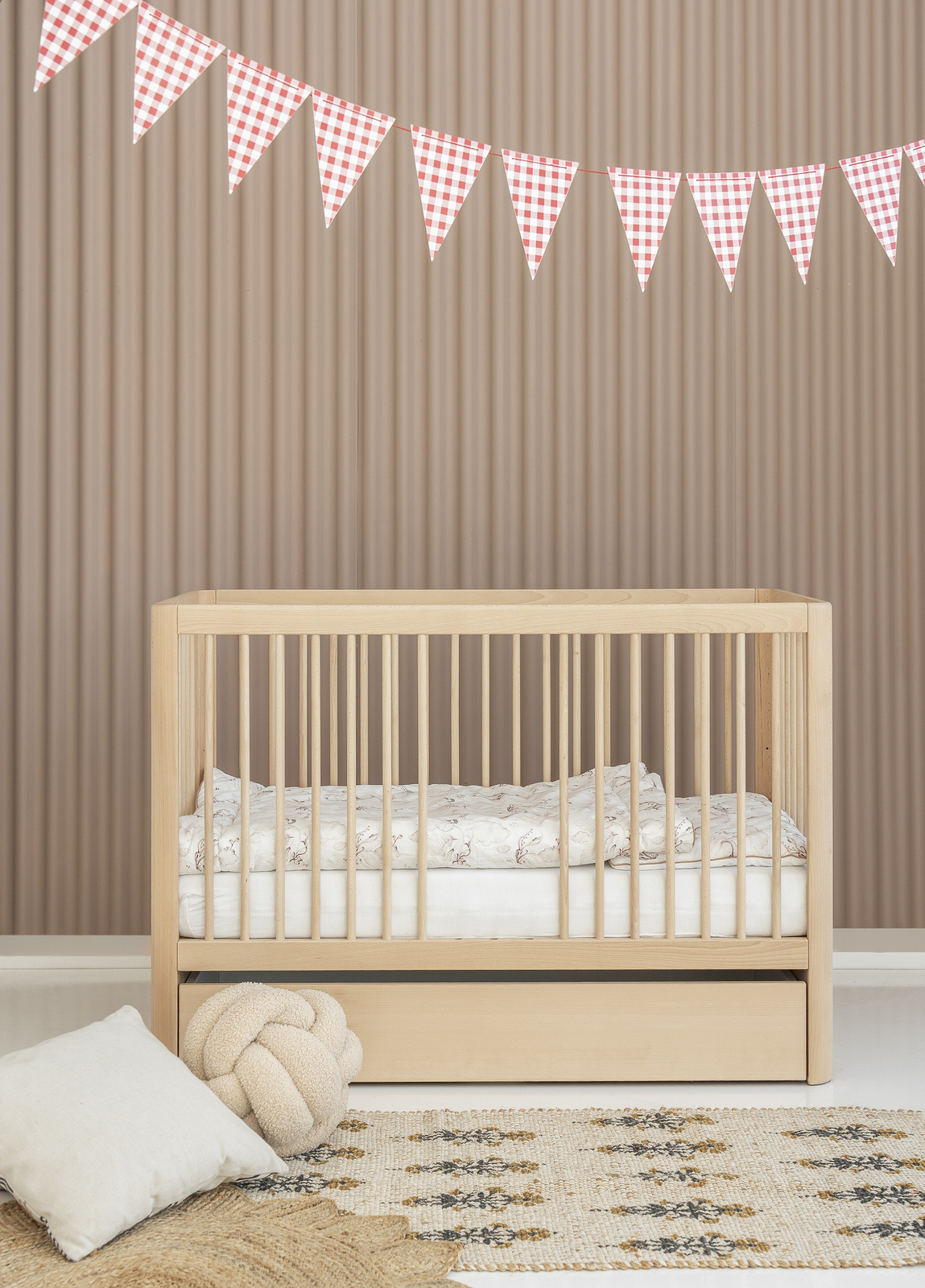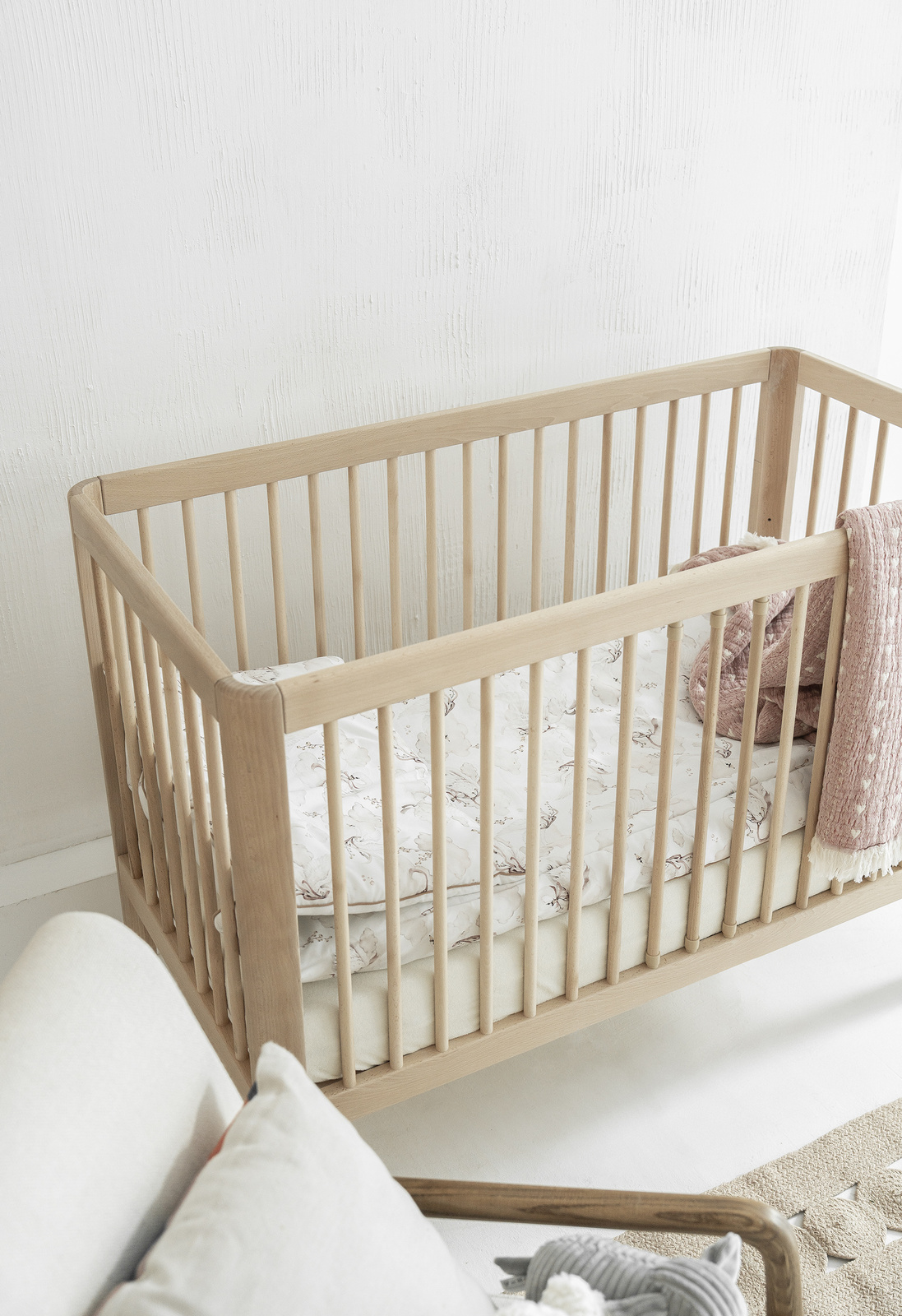 Materiały: Materiał -lite drewno bukowe, leżysko - lite drewno sosnowe. Łóżeczko zgodne z normą EN-716.